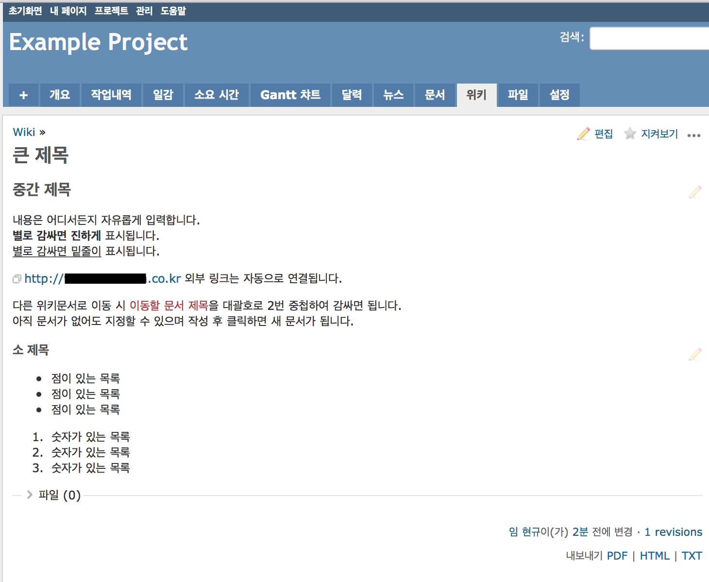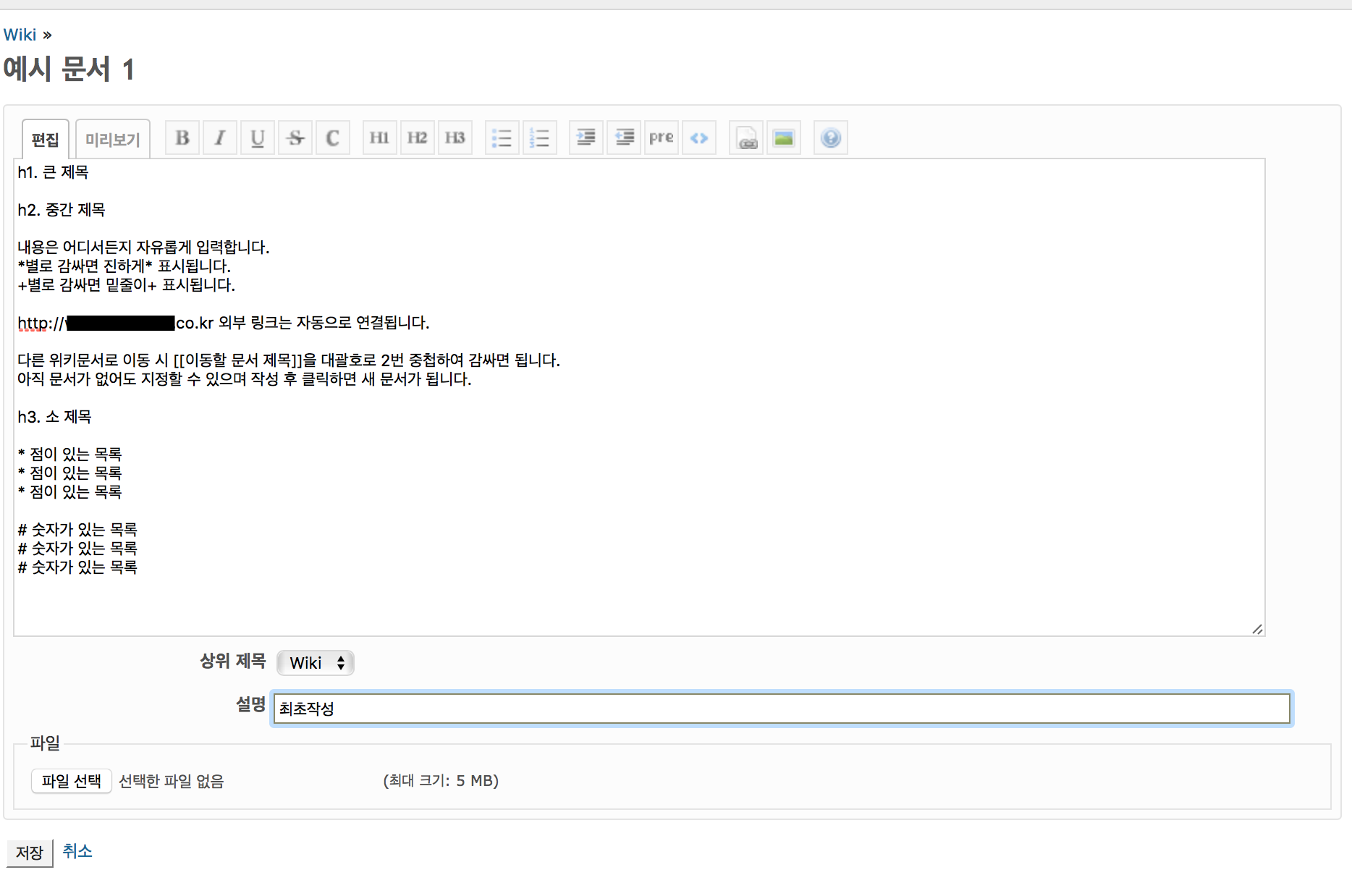 위키 문법은 레드마인 시스템 내 일감, 댓글, 게시판 등 어디에서도 사용 가능합니다.