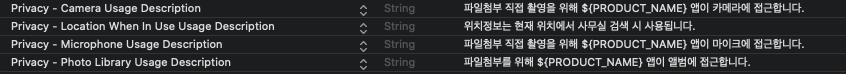 info.plist에 해당 권한에 접근 정보를 기재하지 않을 경우 앱이 종료됩니다.