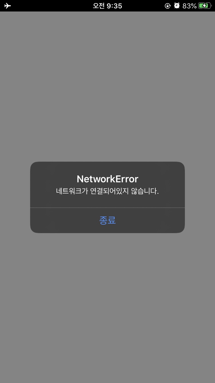 let alert = UIAlertController(title: "NetworkError", message: "네트워크가 연결되어있지 않습니다.", preferredStyle: .alert)