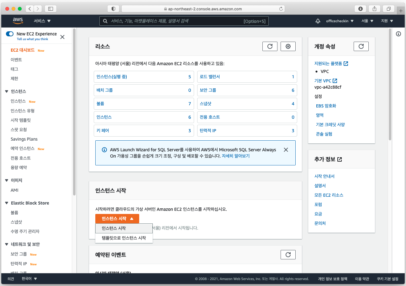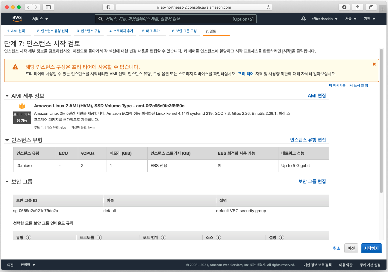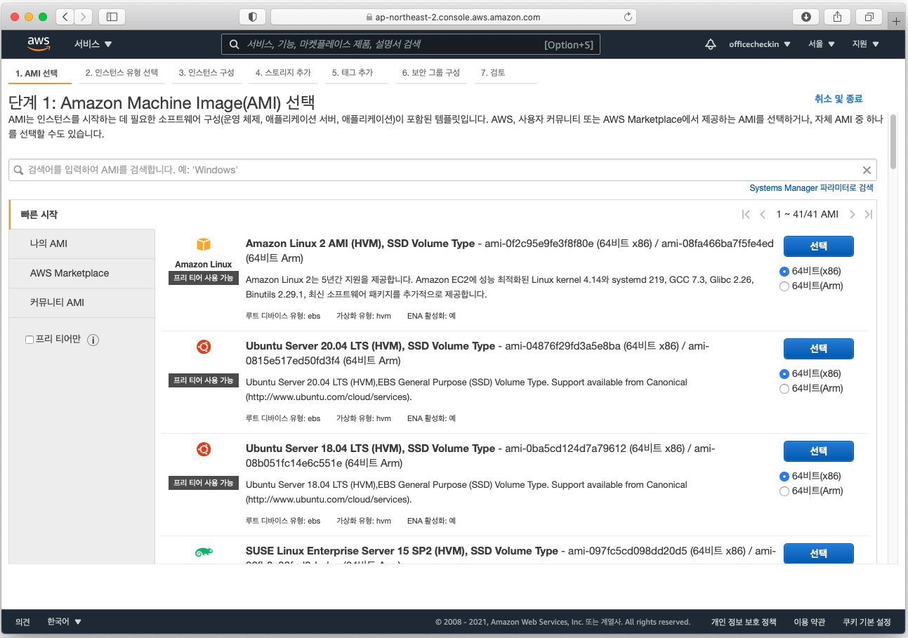 이 단원에서는 스크린샷 위주로 간단하게 설명하므로 AWS EC2에 대한 자세한 내용은 공식 문서를 참고하시기 바랍니다.