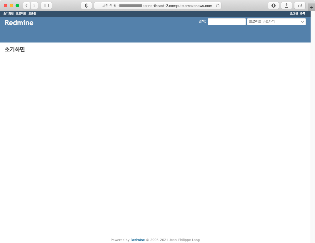5. 웹브라우저를 열고 서버의 IP 혹은 도메인 주소 접속하여 레드마인이 열리는지 확인합니다.