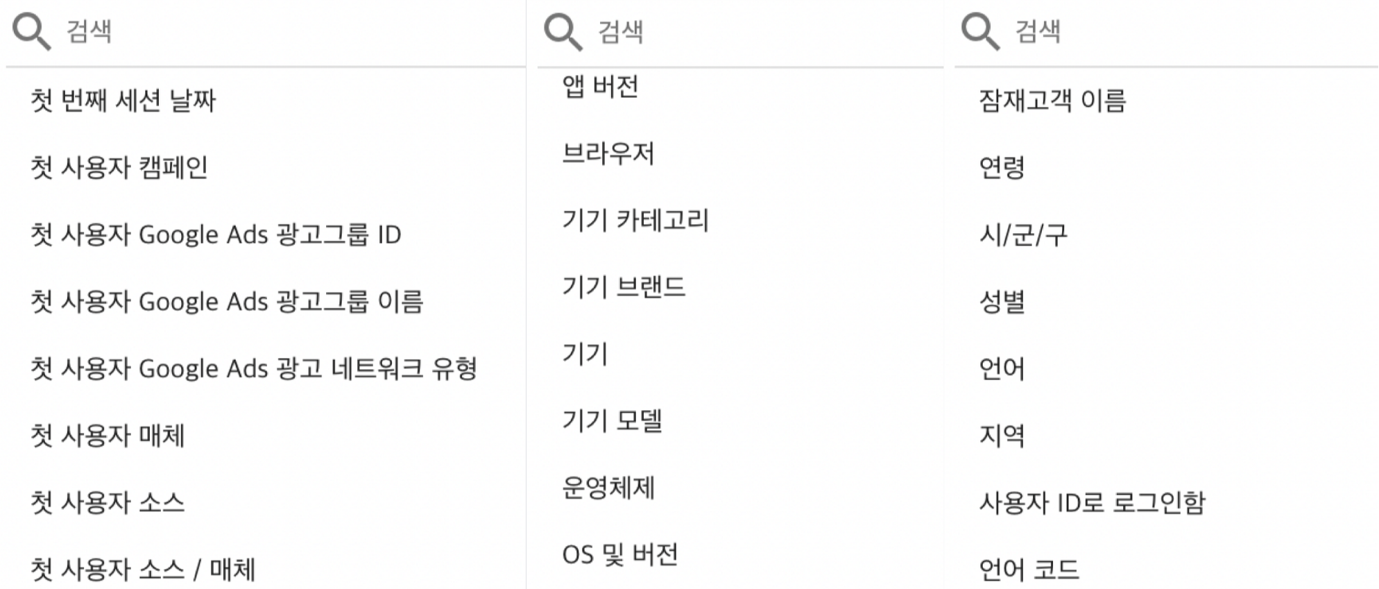 - 획득: 사용자를 획득하는 소스, 매체, 캠페인