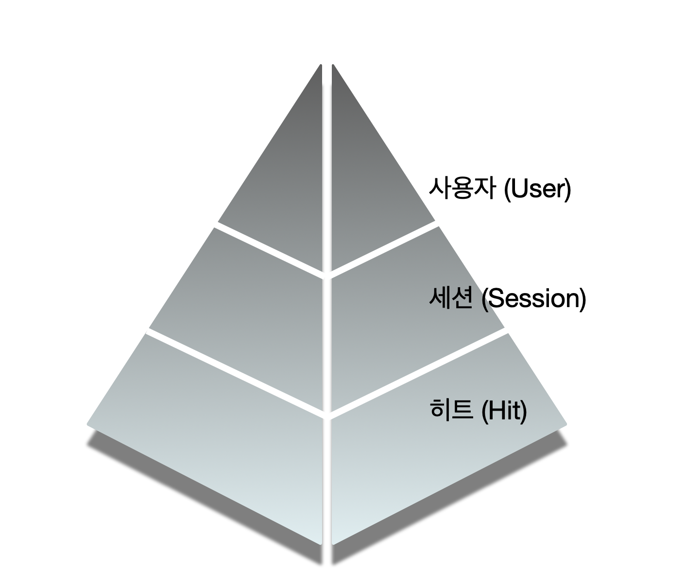 이 세 가지를 정리 용어로 선택한 이유는 GA의 데이터 구조가 [히트-세션-사용자]를 포함하는 피라미드형 위계 구조로 이루어져 있기 때문입니다.