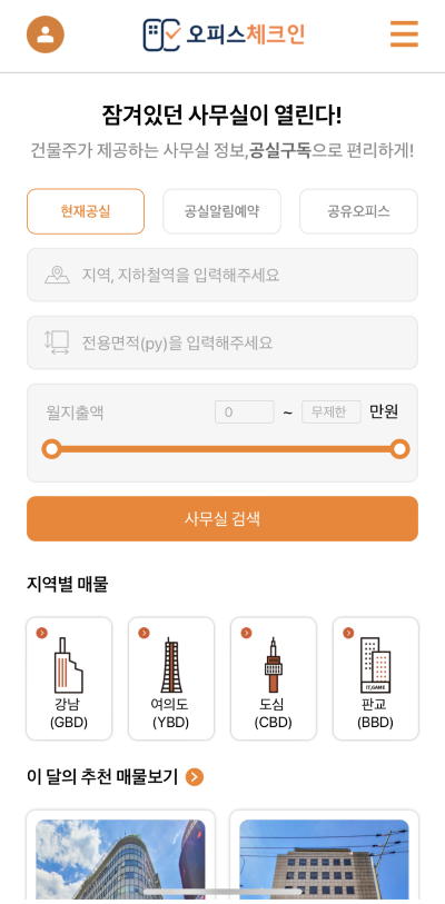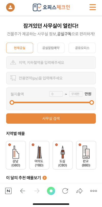 잠겨있던 사무실이 열린다! 오피스체크인 건물주가 제공하는 사무실 정보, 공실구독으로 편리하게!